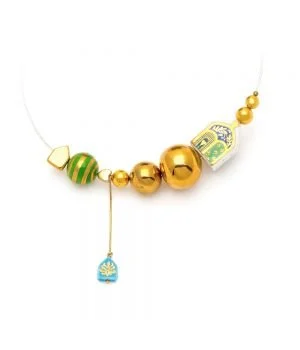 Colier la baza gâtului cu case și sfere din porțelan pictat manual cu aur pur.
